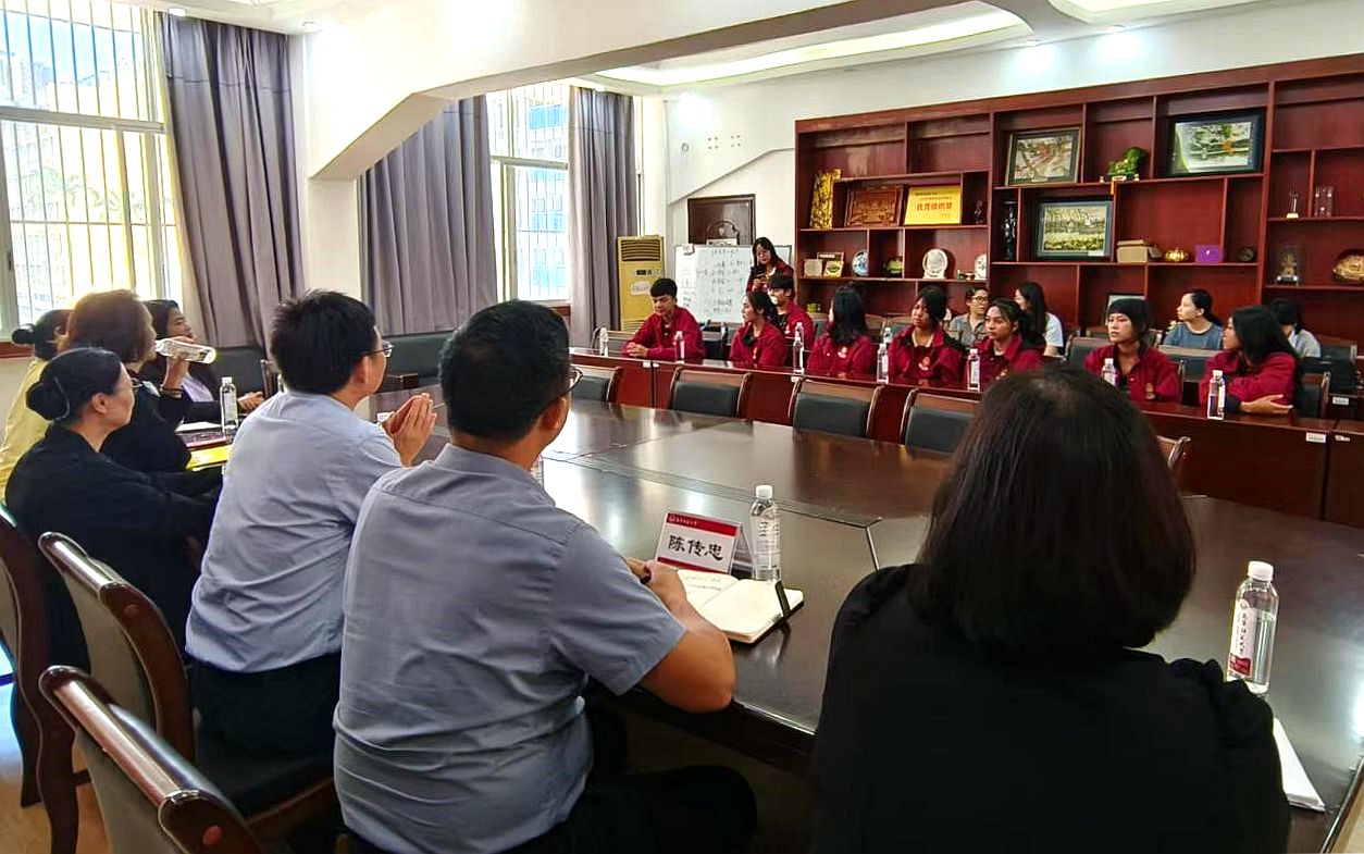 10月20日上午,“2025学年度海外华文与文化学习营”开营仪式在明秀校区外语楼310会议室隆重举行,泰国洛坤府是贪玛叻教育学校月亮董事长、邱瑞芝顾问、吴丽珠主任及慕芸主任,国际交流处处长/国际教育学院院长杨绪明、我校教师代表、13名泰方师生代表出席开营仪式,开营仪式由国际交流合作处副处长/国际教育学院副院长陈传忠主持。