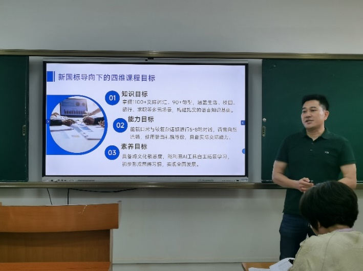为了选拔参加南宁师范大学首届说课程比赛的选手,同时把“攀高峰、强特色”落到日常教学实处,4月7日下午,国际教育学院在外语楼406教室进行了国际教育学院首届说课程比赛。学院党委书记旷晓霞和副院长蒋招凤教授到场指导,比赛先由参赛教师进行10分钟说课程,然后由评委提问,由校级、院级教学督导员担任此次比赛的评委并从课程的定位、教学理念和设计、教学环境、教学方法、创新特色、教学效果、评价方式、质量保障体系等进行评分。